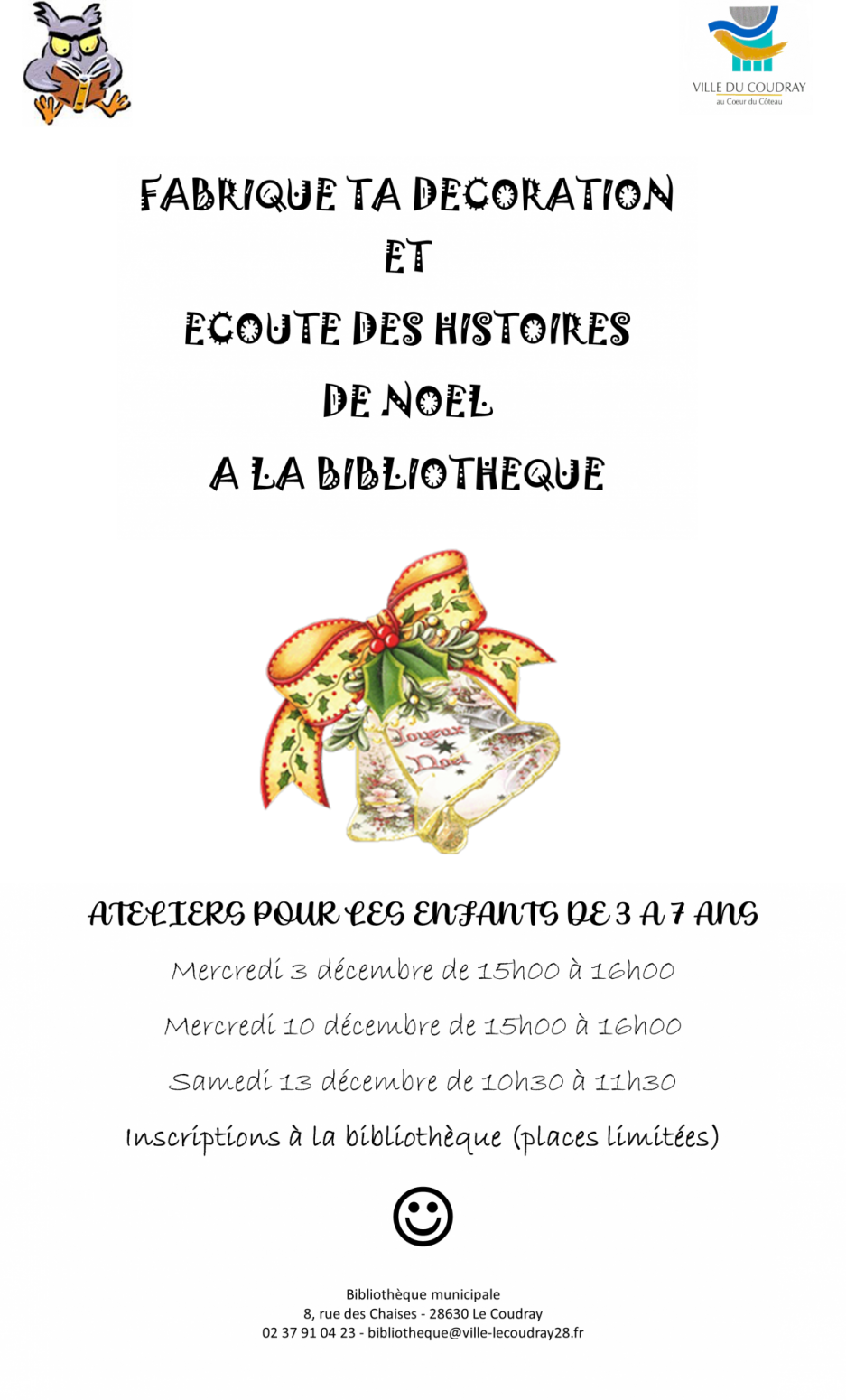 Bibliohtèque : Ateliers de Noël à la bibliothèque Du 10 décembre 2025 à 10h30 au 13 décembre 2025 à 11h30